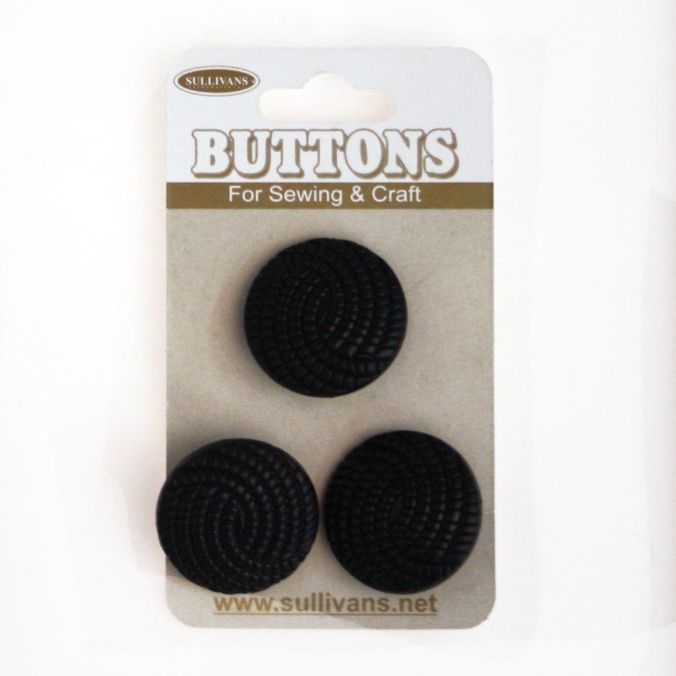 Button down your sewing or craft with this great range from Sullivans. These round shank buttons are slightly domed and textured. These black buttons are ideal for jackets and coats. Pack of 3. Size: 23mm each.