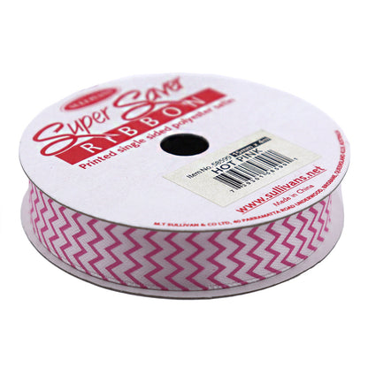 Sullivans Satin Ribbon, Chevron Hot Pink- 25mm