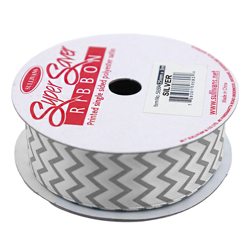 Sullivans Satin Ribbon, Chevron Silver- 25mm