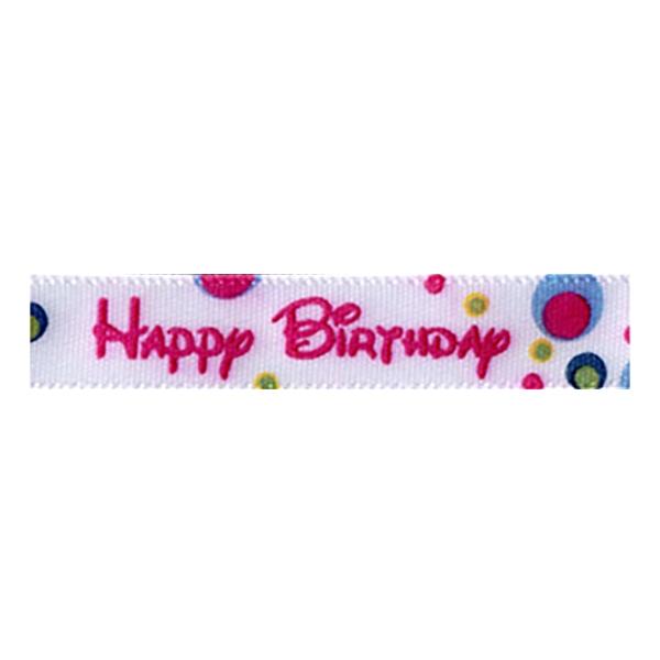Sullivans Satin Ribbon, Happy Birthday White Pink- 9mm