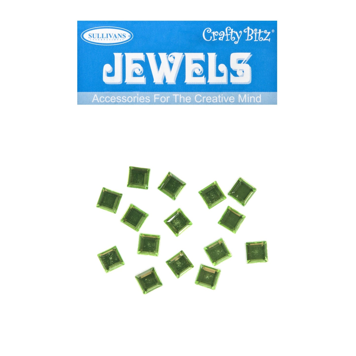Make it shine with these fantastic Square Jewels from Sullivans' Crafty Bitz range. These flat backed jewels can be attached with glue to any fabric or craft project. Perfect for adding shiny interest to your creative work or renewing your wardrobe. Pack of 15. Colour: Jade.