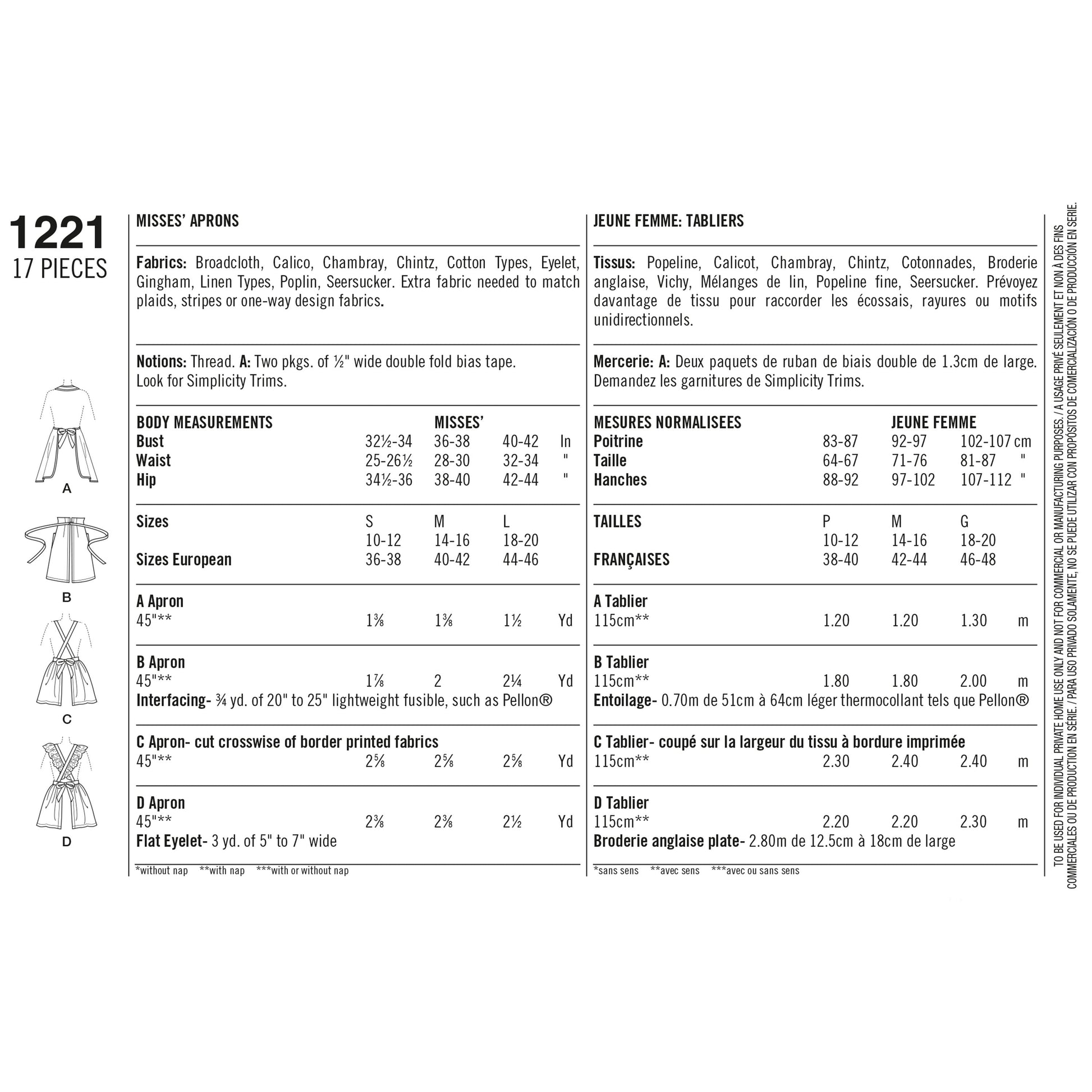 Simplicity Pattern 1221 Women's Vintage Aprons
