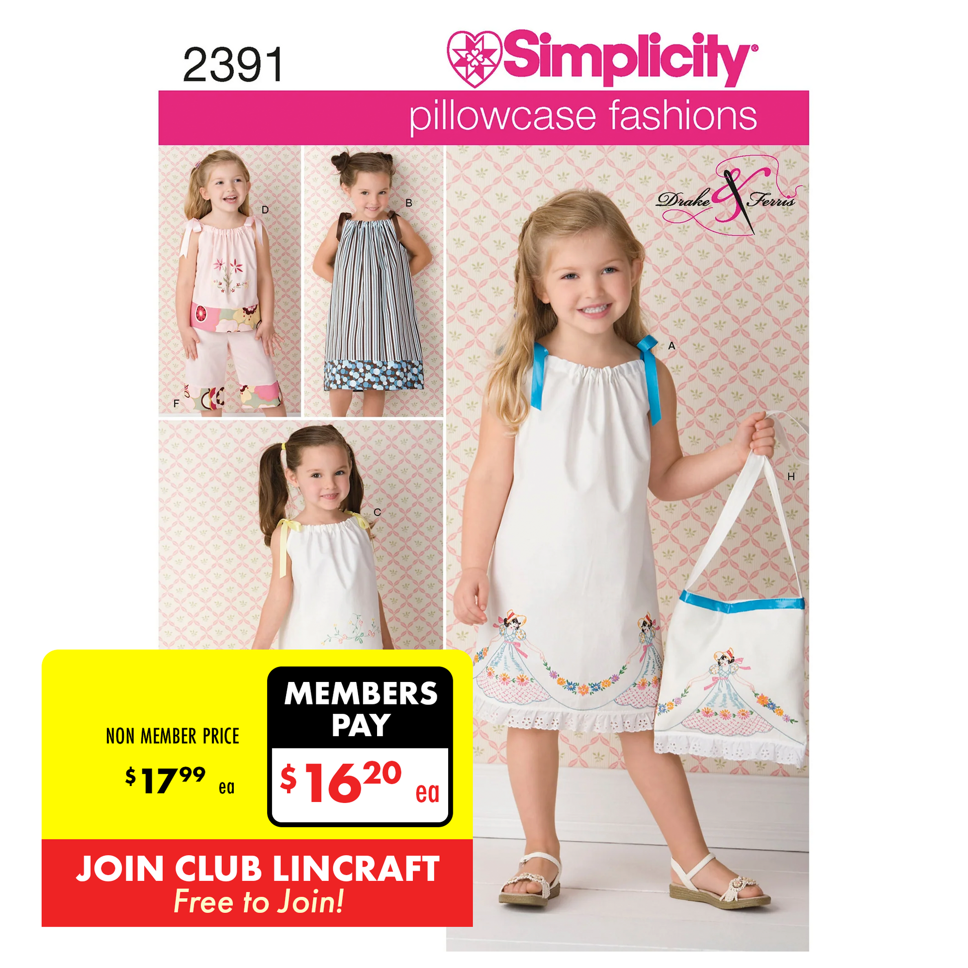 Simplicity Pattern 2391 Child's vintage pillow case fashion