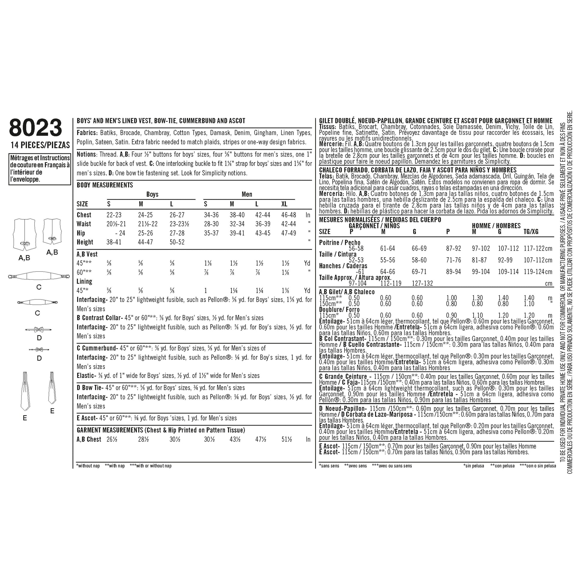 Simplicity Pattern 8023 Boys' and Men's Vest, Bow-tie, Cummerbund and Ascot