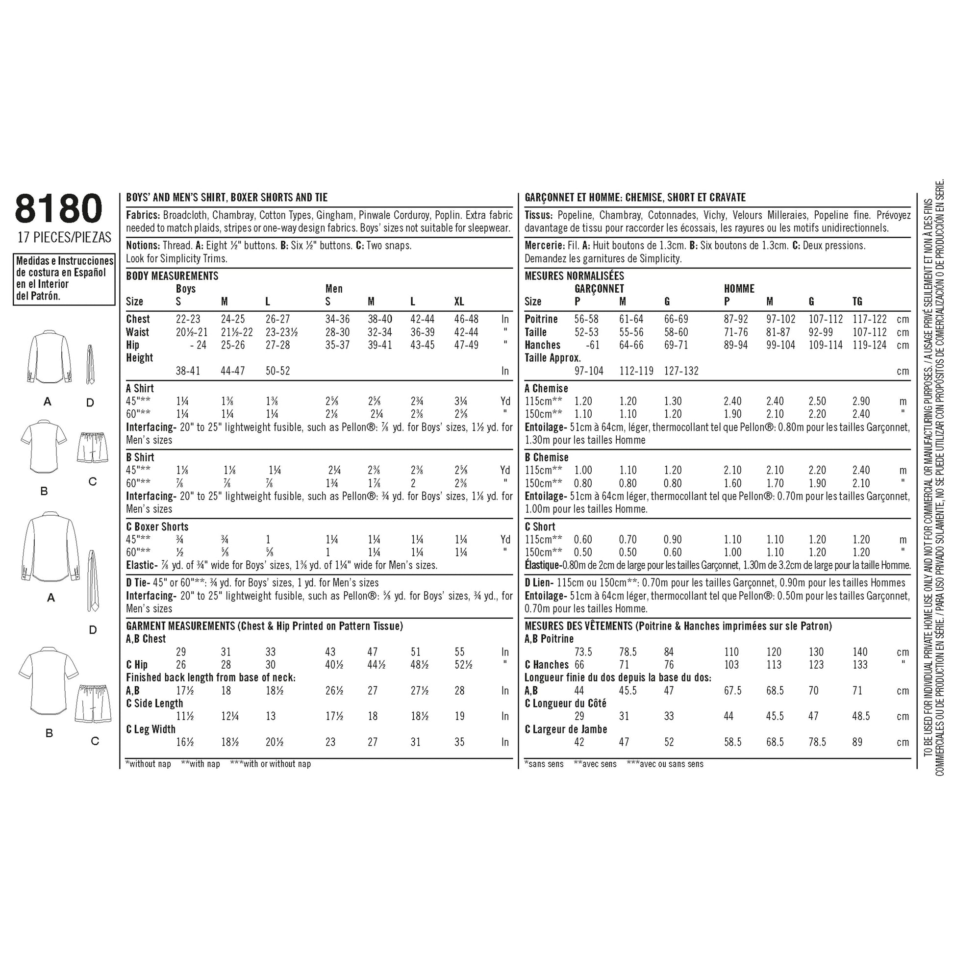 Simplicity Pattern 8180 Boys' and Men's Shirt, Boxer Shorts and Tie