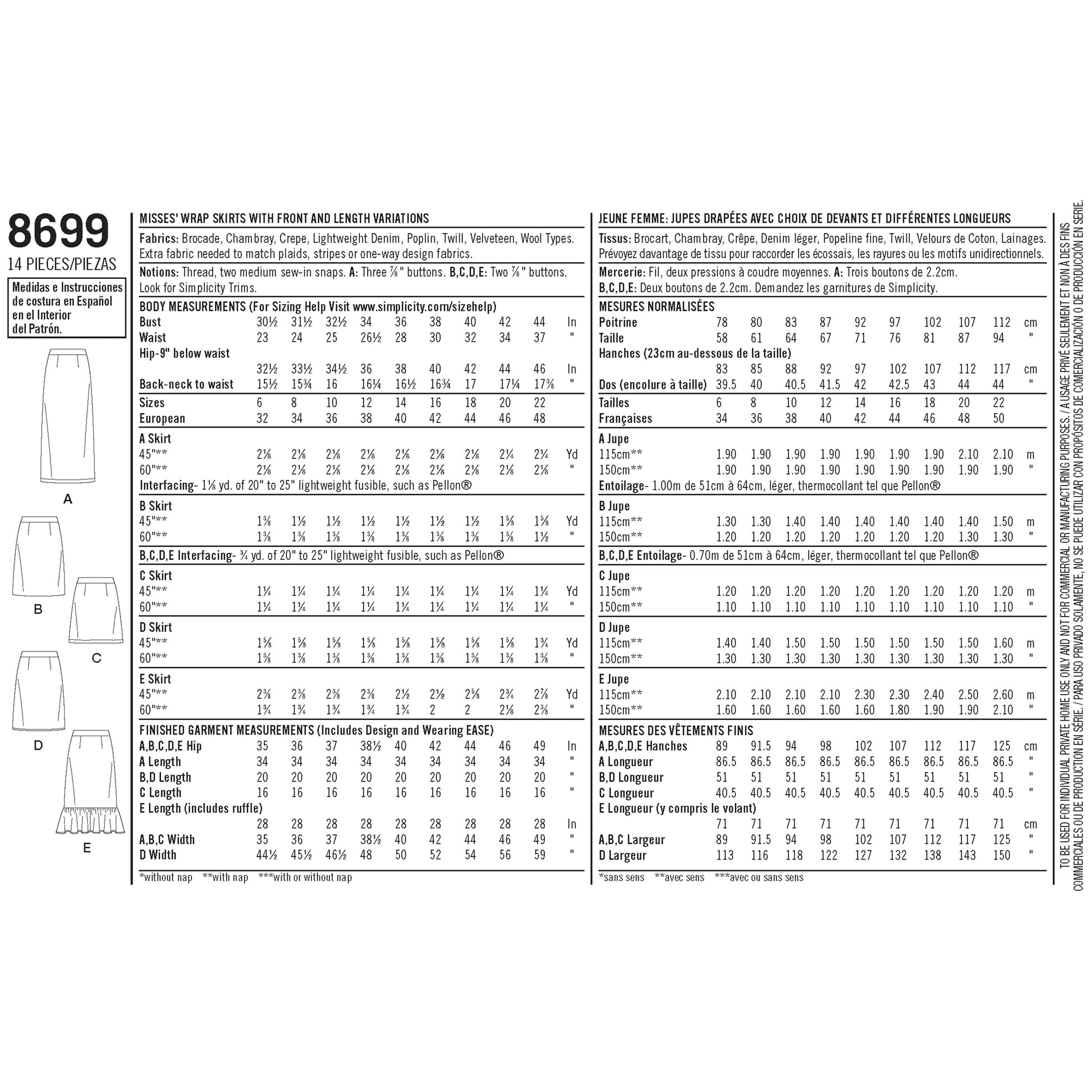 Simplicity Pattern 8699 Women's Wrap Skirts with Length Variations