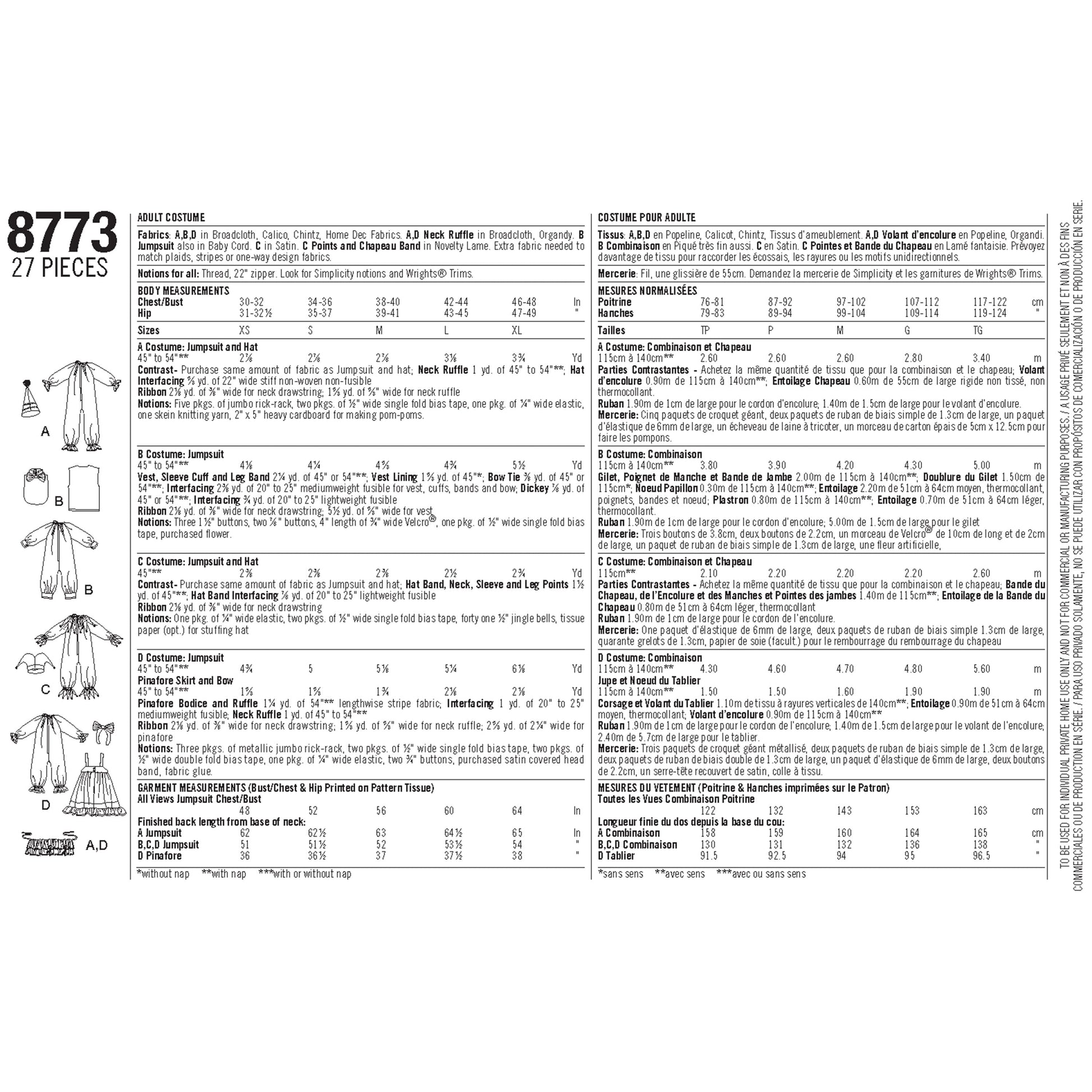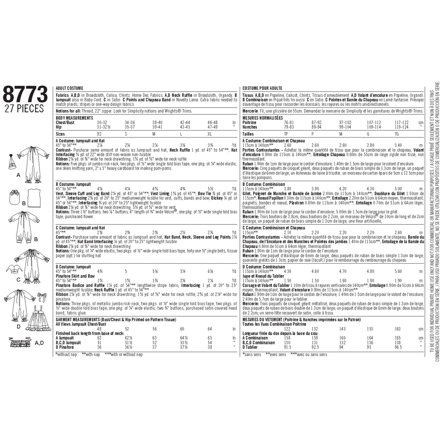 Simplicity Pattern 8773 Women's, Men's and Teens' Costumes