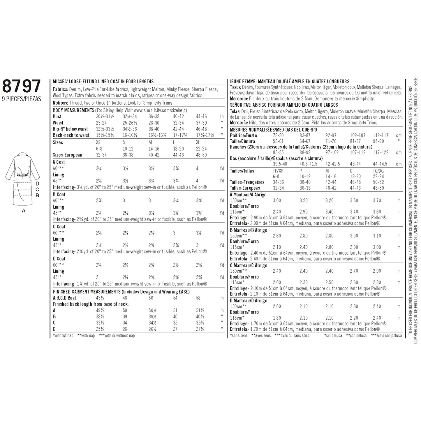 Simplicity Pattern 8797 Misses Loose Fitting Lined Coat