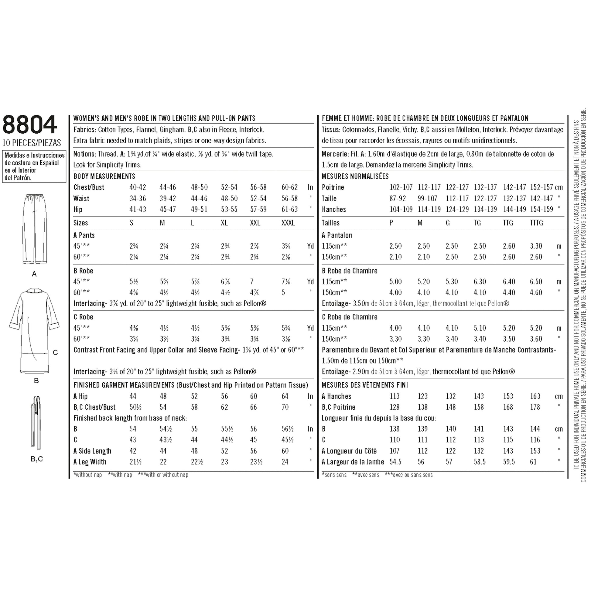 Simplicity Pattern 8804 Women's and Men's Robe and Pants
