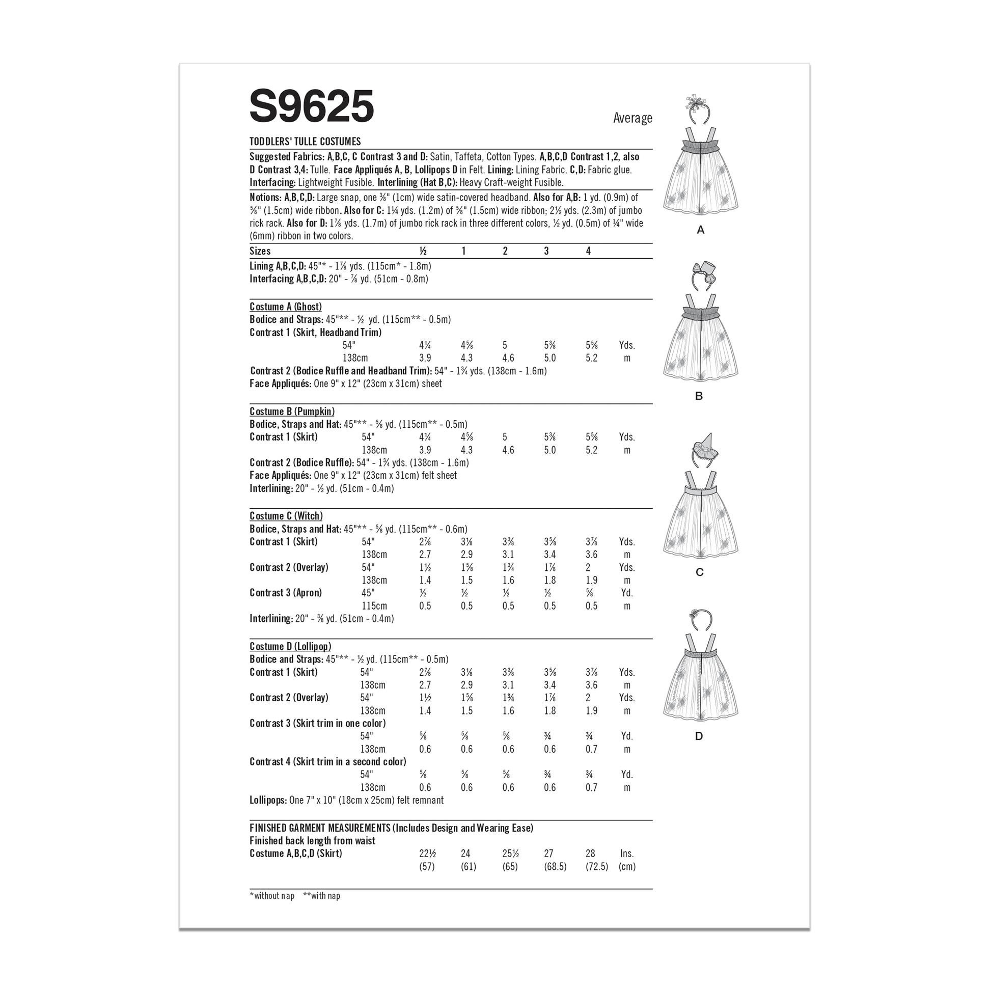 Simplicity Pattern S9625A Toddler's Tulle Costumes