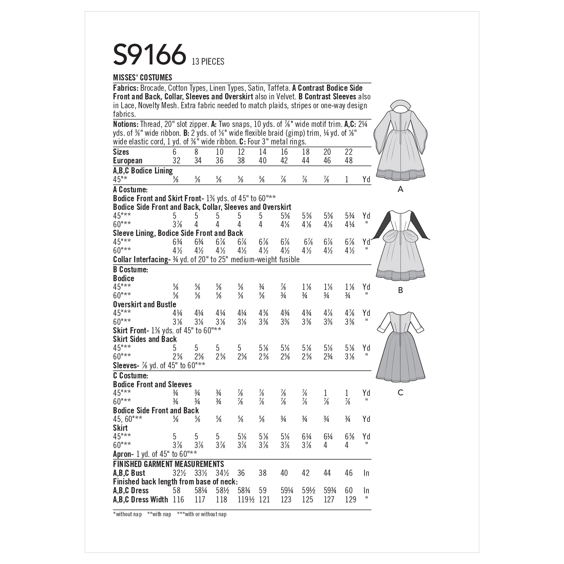 Simplicity SS9166H5 6-8-10-12-14 Conjure up some magic in fanciful witchy costumes with pop culture appeal. Sizes for misses 6-22 - great for group costuming!