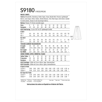 Simplicity Pattern 9180 Misses' Skirts