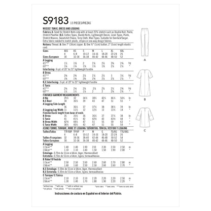 Simplicity Pattern 9183 Misses' Tunic, Top, Dress & Legging