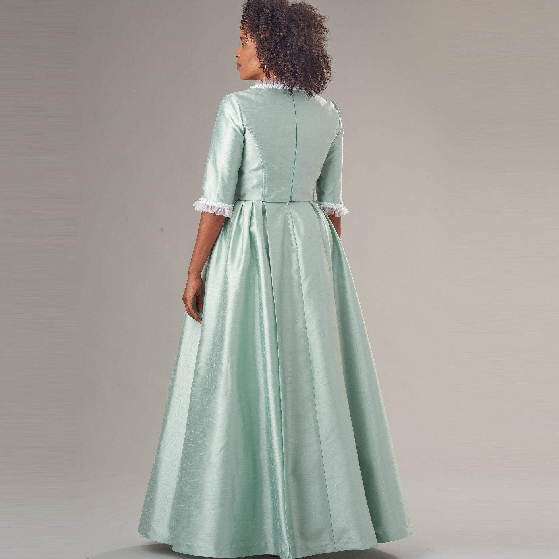 Simplicity SS9251H5 H5 (6-8-10-12-14) 18th century-inspired costumes get a modern twist. Corseted boned tops with elbow length sleeves & trim options zip up the back with ease. Full pleated skirt finishes the look with swing & sass.