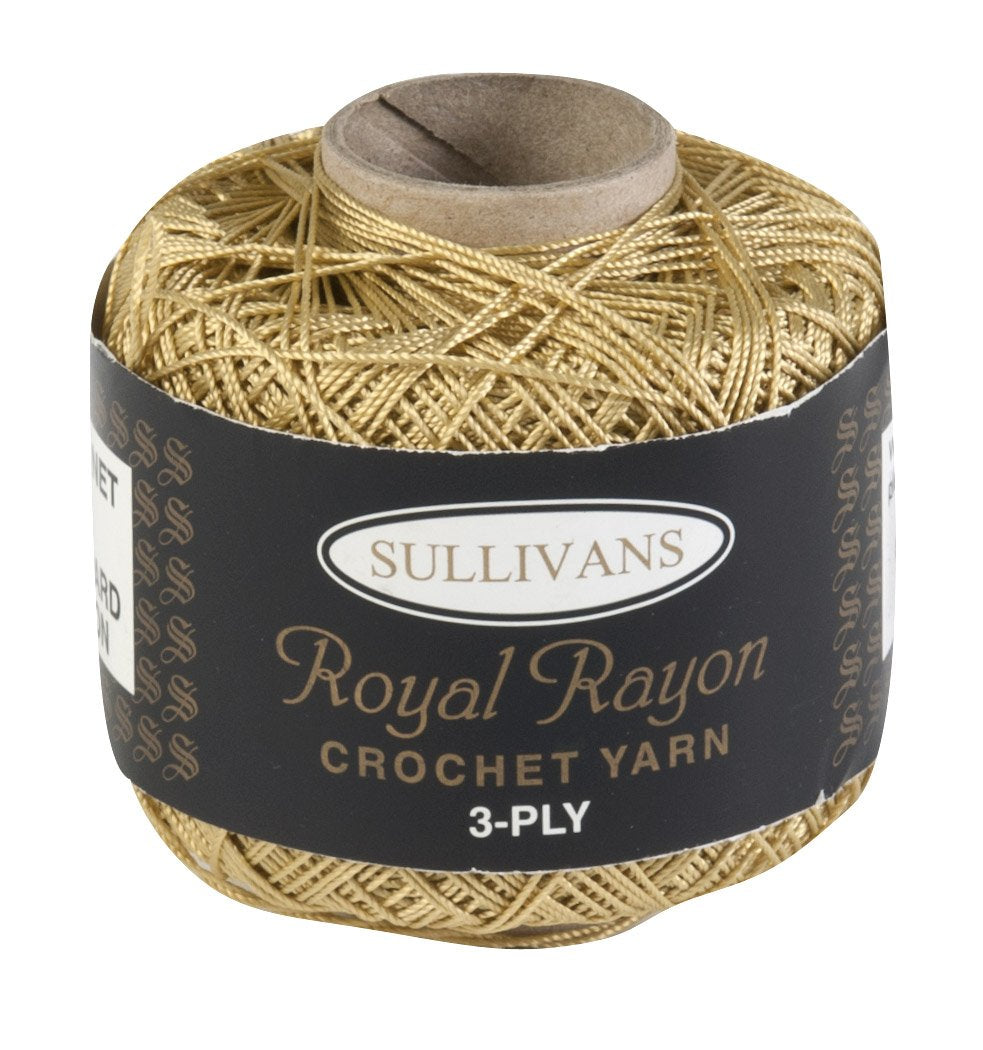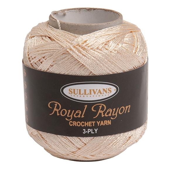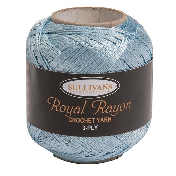 - Add a shimmer to your project with this vivid range of Royal Rayon Crochet Yarn. 100% Rayon.