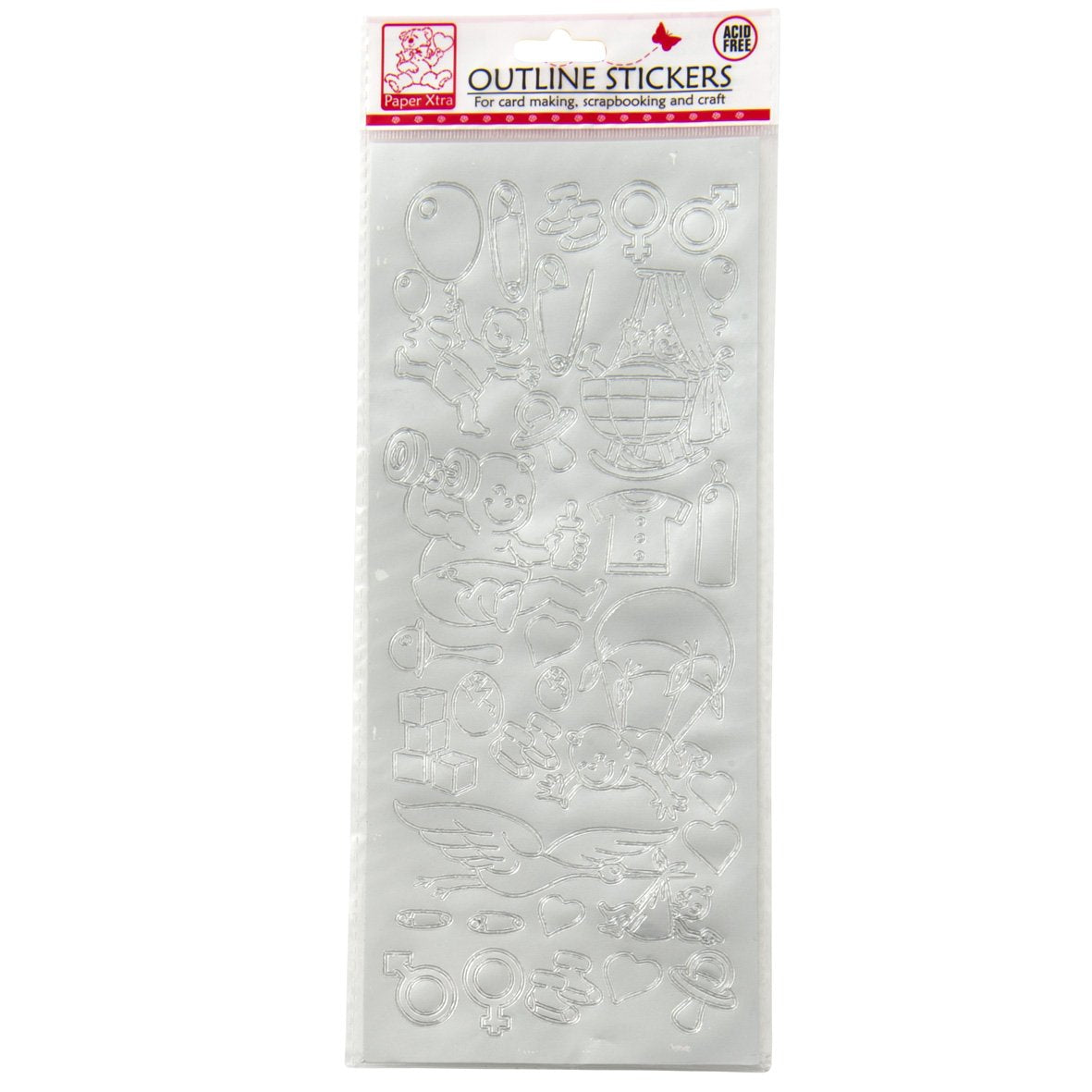 Decorate and embellish to your heart's desire with this fun range of Outline Stickers from Sullivans. Ideal for card making, scrapbooking and craft. Available in Silver with an assorted Baby design.
