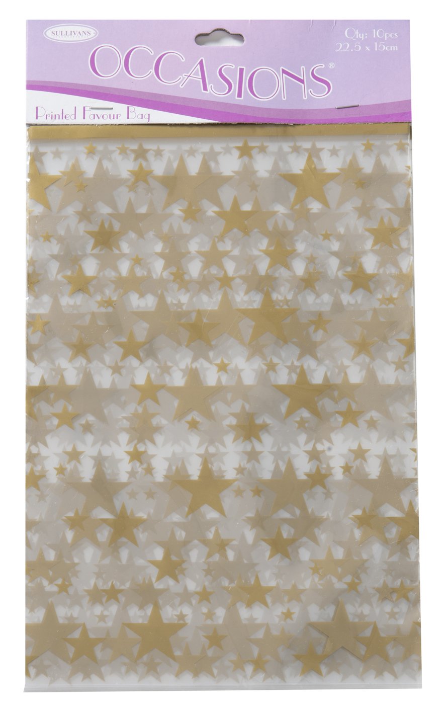 Make event planning quick and easy with these affordable quality items from Sullivans. Printed Favour Bags are ideal for bomboniere and wedding favours, kid's birthday parties and gift giving. Available in Gold Stars. Pack of 10. Size: 22.5 x 15cm.