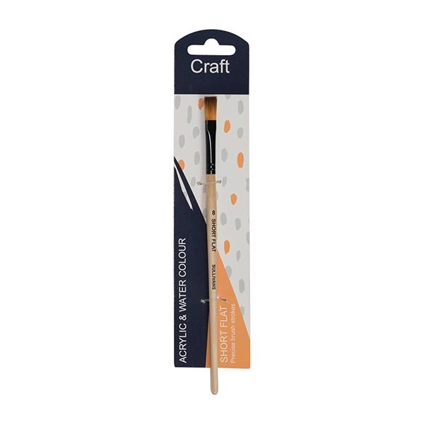 - Short Flat brushes with square end, with medium to long hairs are suitable for acrylics, oils and watercolours.