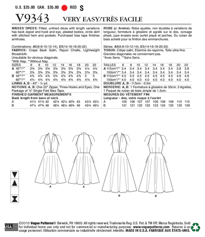 Vogue Pattern V9343 Misses' Dress
