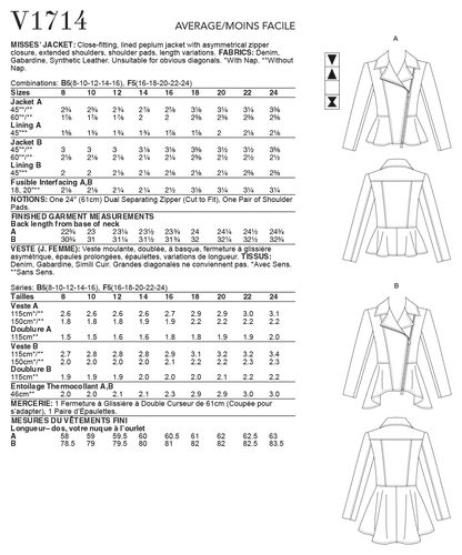 Vogue Pattern V1714 Misses' Jacket