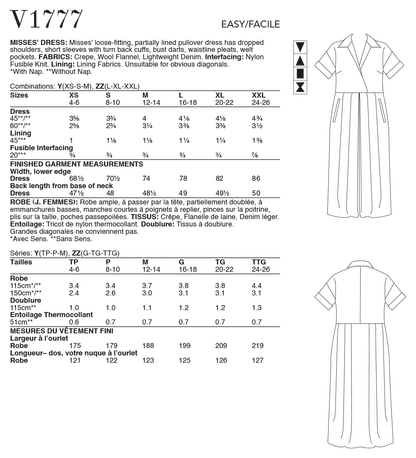 Vogue Pattern V1777 Misses Dress