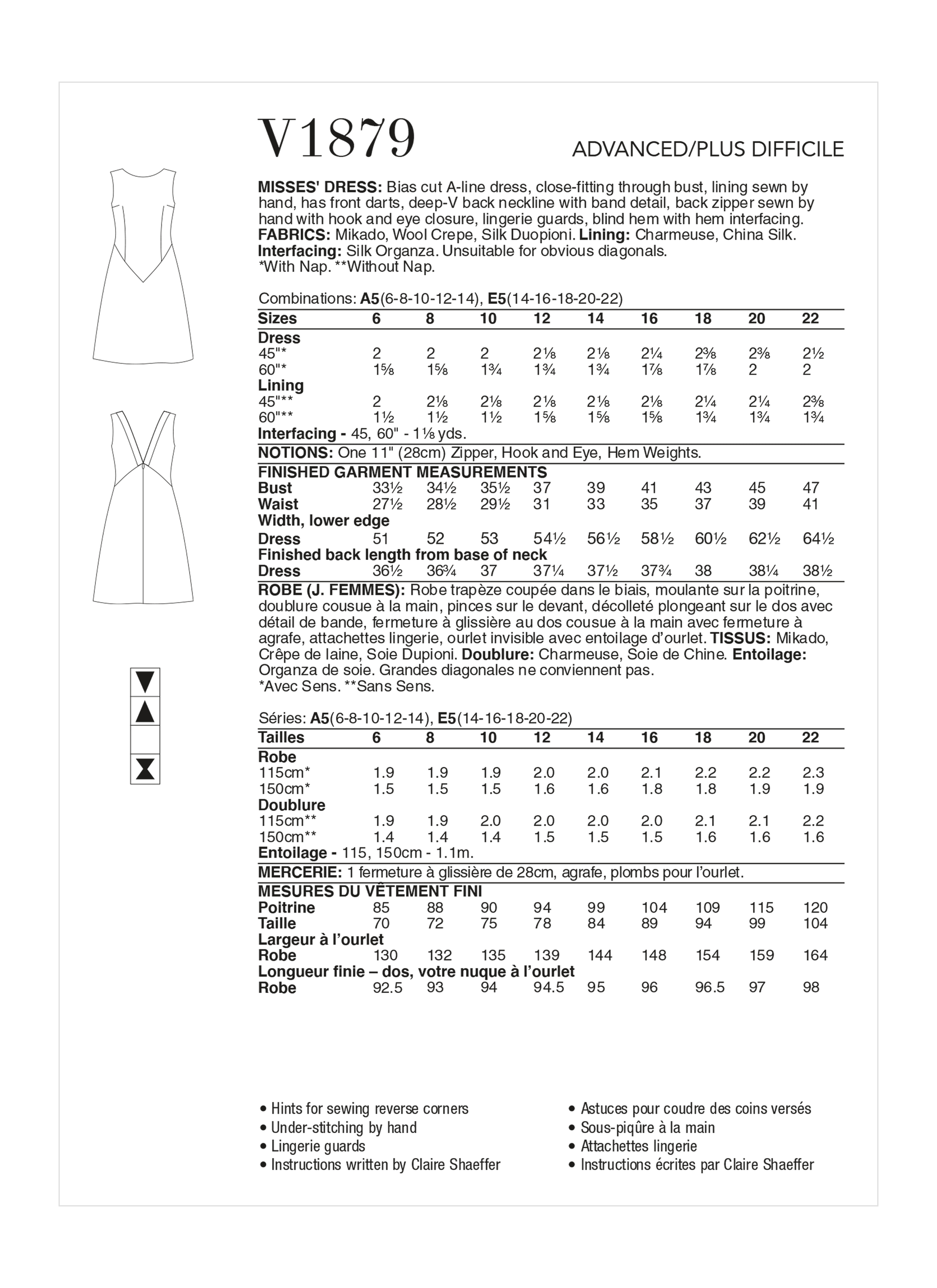 Vogue Pattern V1879 Misses' Dress by Claire Shaeffer