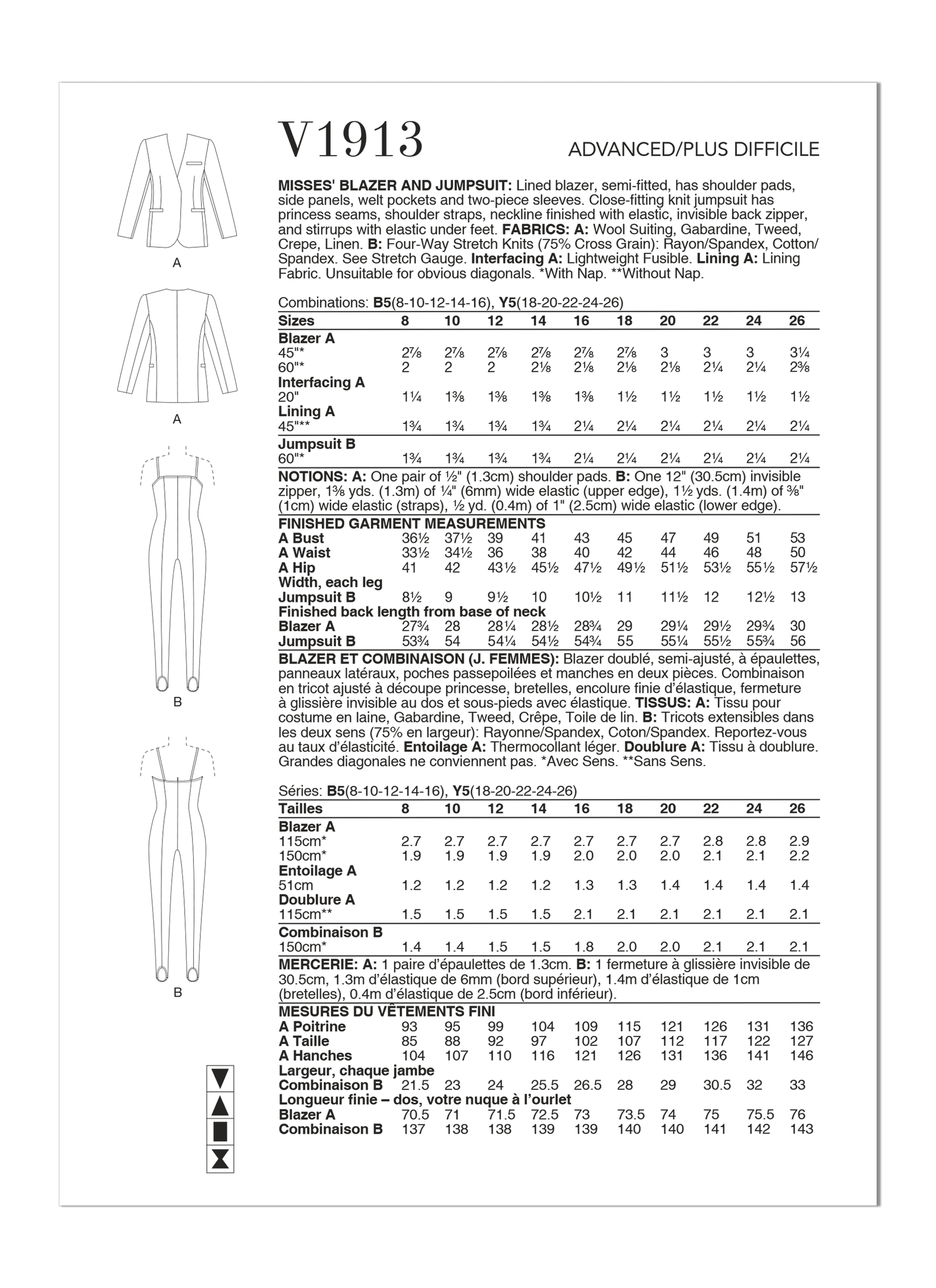Vogue Pattern V1913 Misses Blazer & Jumpsuit