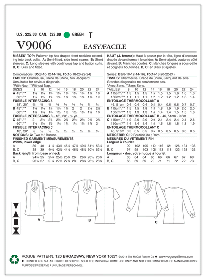 Vogue Pattern V9006 Misses' Top