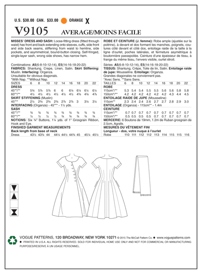Vogue Pattern V9105 Misses' Dress and Sash